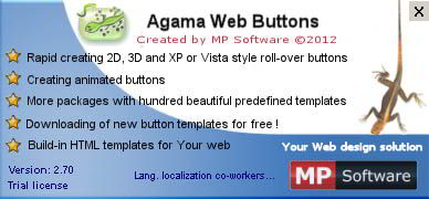 MP Software Agama Web Buttons is a tool that can make for a perfect and fully functional DHTML menus (web menu) compatible with all commonly used browsers without writing a single line of code. Agama Web Buttons allows for a beginner create a professional DHTML menus during several minutes only.